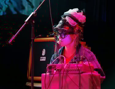 VROUW! is five women from different countries and artistic backgrounds, creating and performing together since 2019. They are an ensemble invested in creating experimental improvised music that has a distinct sound. They are proud members of the queer community in the avant-garde music and performance scene in Berlin. Their sound is based on using amplified objects, careful listening, and the strong presence of multiple voices and languages. Some of the objects they play are self-made, including their signature microphone hats. VROUW! released their first album Sonic Replicants in 2022 with Econore Records. Their first vinyl LP VROUW! came out the following year on Soft Noise Acousmatics and supported by Musikfonds e.V.